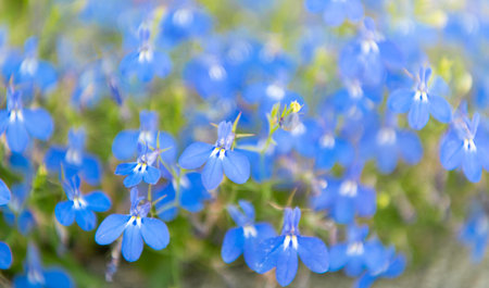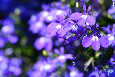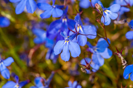 Bright blue flowers of Lobelia. Close-up on a sunny day. Selective focus