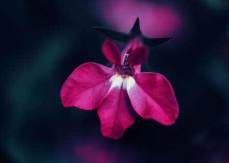 Lobelia flower. Flowering lobelia in macro, selective focus. Outdoor flowering plant. Blue lobelia flower. Natural flower plant. Flora nature. Blue flower background. Floral lobelia blue background