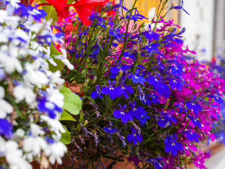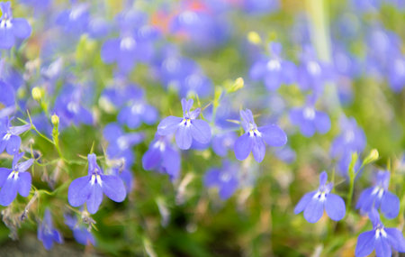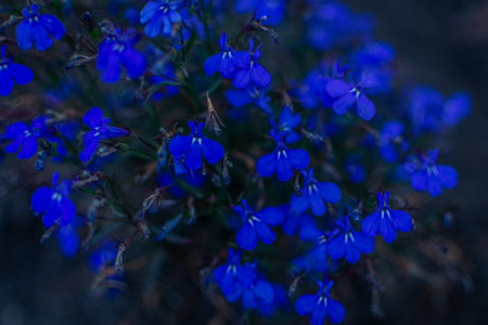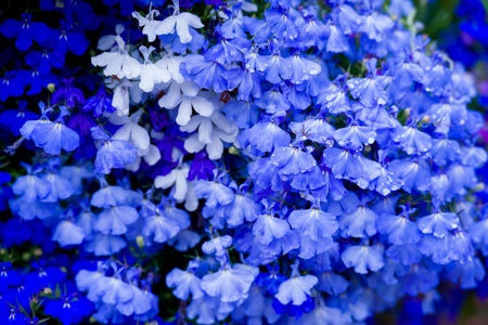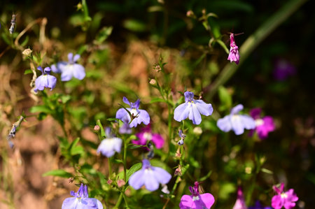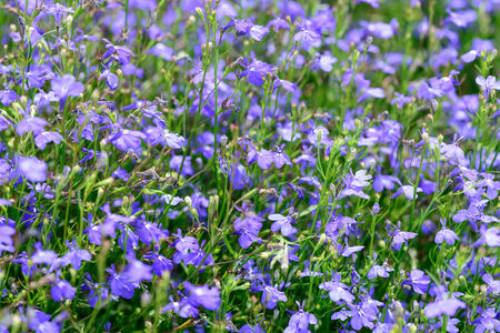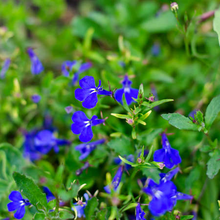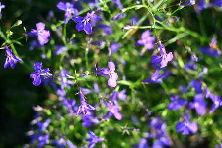 colorful Lobelia flower in the summer garden is a genus of flowering plants comprising 415 species with subcosmopolitan distribution primarily in tropical to warm temperate regions of the world.