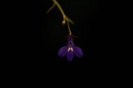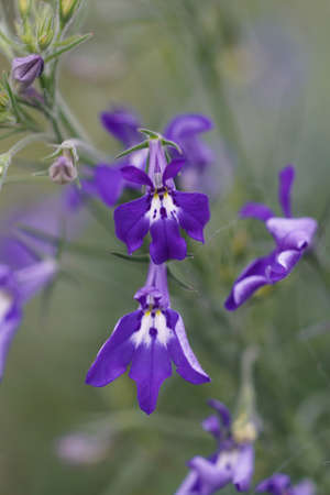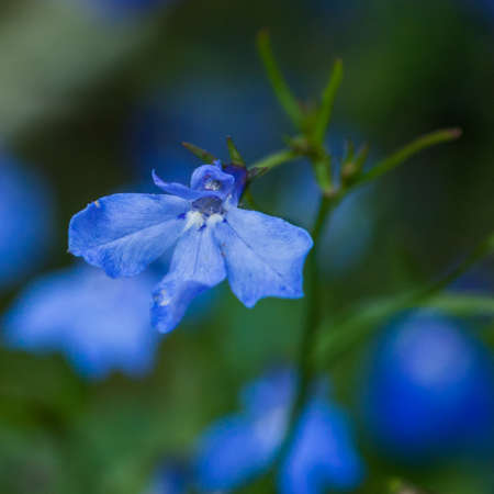 Beautiful purple Lobelia, flower blossom in shallow depth of field focus, with other flowers and leaves blurred.
