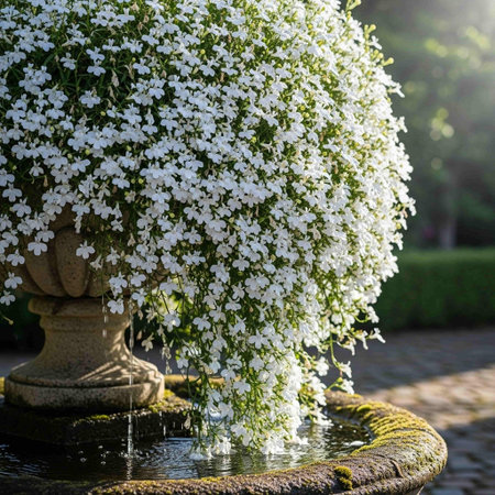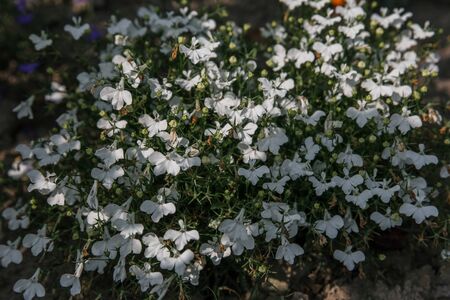 White Lobelia in the garden in the backyard. Gardening and flower care