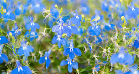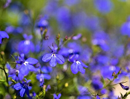 The beautiful sapphire blue flowers of Lobelia erinus, a popular summer bedding plant