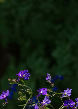 close-up of blue flowers outdoor in sunny backyard shot at shallow depth of field