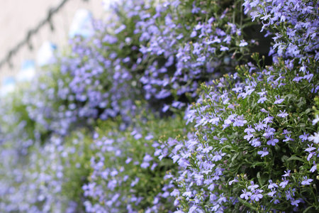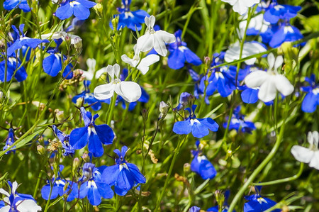 Bright blue Sapphire lobelia flowers growing in the garden in summer sunny day.