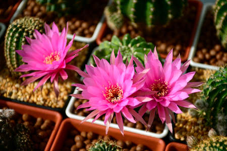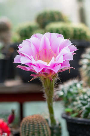 Beautiful pink flower of Echinopsis cactus with blurred background