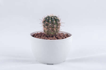 Close up Colorful Gymnocalycium LB Hybrid in pot on yellow background.