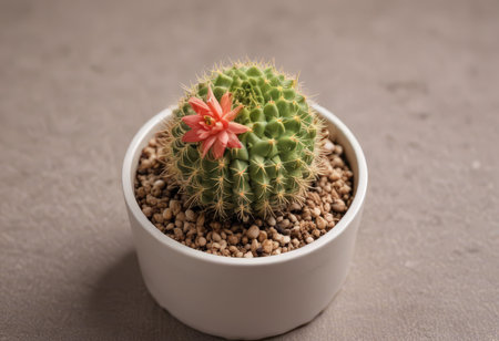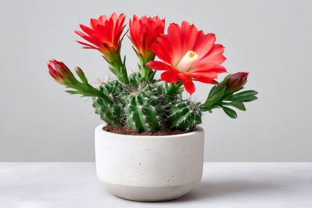 Beautiful cactus plant showcasing vibrant red flowers, adding a touch of color to a modern home decor setting