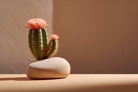 AI Generated. A flowering cactus in bright form with symmetric spines engraved by sunlight design