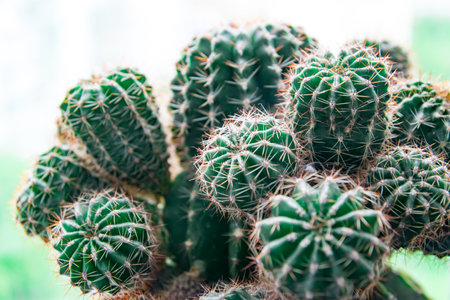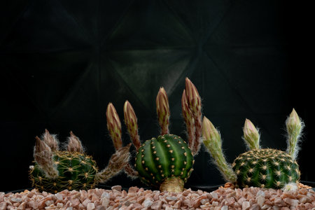 A group of green succulent cactus (Echinopsis) with round shapes for decorating in the rock garden.