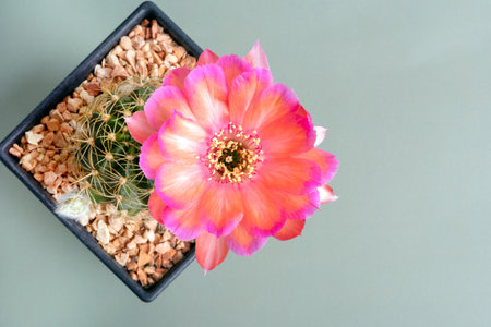 Colourful Cactus flower plant nature flowers on hand, Nature background and space for text