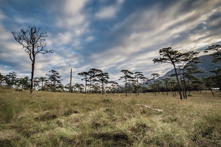 pine tree forest in the mist at Phu Soi Dao national park Uttaradit province Thailand