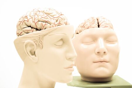 Human brain on light background, highlights and shadows that highlight its texture and contours.
