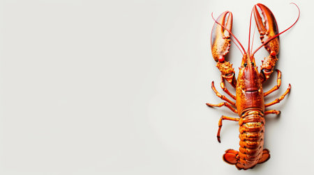 Top view of roasted lobster on a clean light background. Copy space, aesthetic restaurant template. Generative AI.