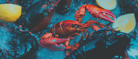 Freshly caught lobster with lemon wedges for a luxurious seafood feast