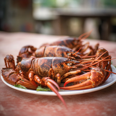 Freshly cooked lobsters ready for a seafood feast in a cozy kitchen setting