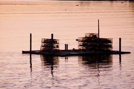 lobster traps at Bar Harbor Maine,at sunset
