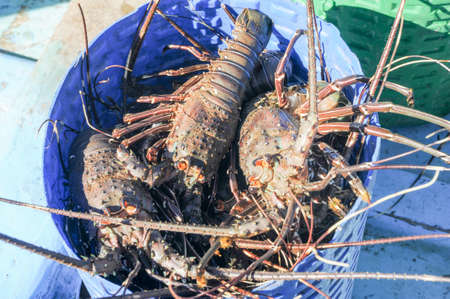 Freshly caught crayfish at Banks peninsula, New Zealand