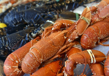 Fresh Lobsters on a fishmarket. Healthy fresh nutrition. Healthy food background. Hight quality photo