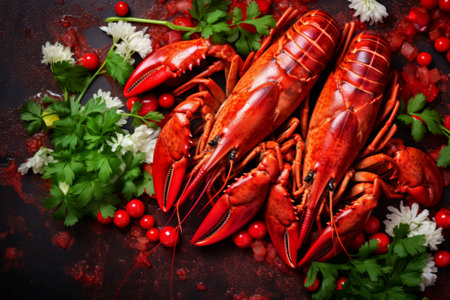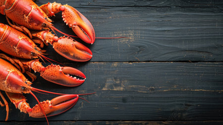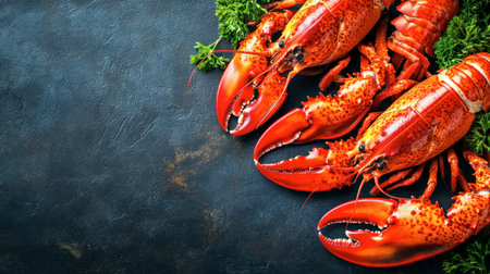 A stunning display of fresh lobsters arranged on a dark background, showcasing their vibrant colors and exquisite details, perfect for culinary inspiration.