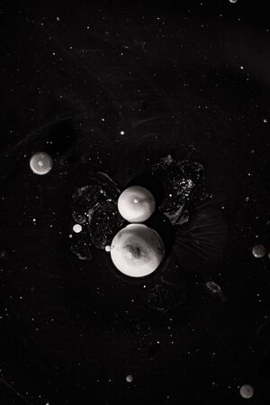 Oil drops in the water and milk create an artistic and imaginatively designed abstract background