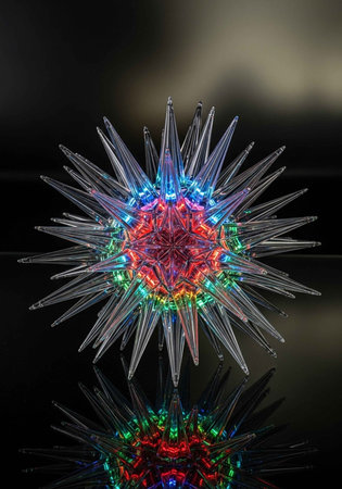 A vibrant and intricate crystal formation with a kaleidoscope of colors