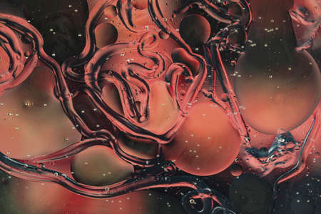 Oil bubbles on water abstract form in glass tank