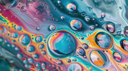 Colourful oil ink bubbles and drops. Abstract template mixed texture background. Wallpaper pattern.