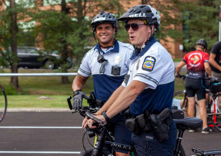 Columbus, OH USA 08-07-2021: Annual Pelatonia fundraiser for the Ohio State University cancer center. Columbus Police Officers also participate the fundraiser with their bikes and tshirts
