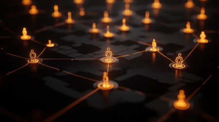 Illuminated icons of connection a dark background depicting an abstract social network concept
