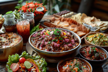 Vibrant spread of mexican dishes with fresh ingredients on a wooden surface