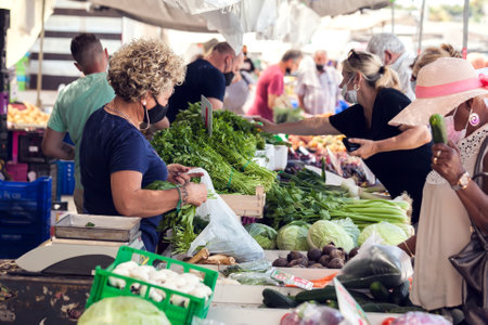 Limassol Cyprus June 13, 2020 Portrait of unidentified people shopping at the Limassol market in the morning