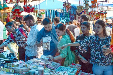 Panaji, India - December 12, 2018: Passengers at the bus station in the city of Panaji. Goa.