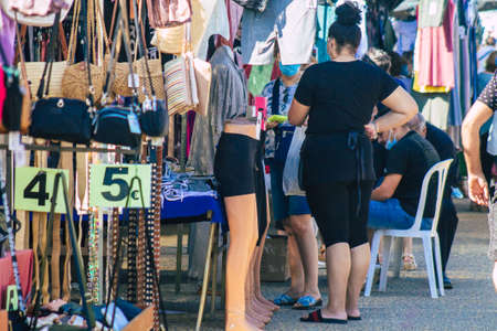 Torrevieja, Spain, 11 of June 2021. Outdoor market with buyers and sellers in Torrevieja, Spain, Costa Blanca