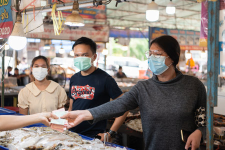 Suphanburi, Thailand - October 30, 2021 : Unidentified woman shopping at Thai street food market vintage style can buy food vegetable and fruit in cheap price.
