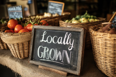 Buy Local Chalkboard With White Onions, Egg Plants, Green Beans and Tomatoes For Sale at the Farmers Market