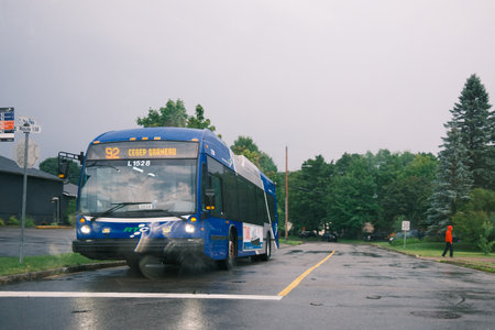 RTC bus in Quebec City during a rainy day.
