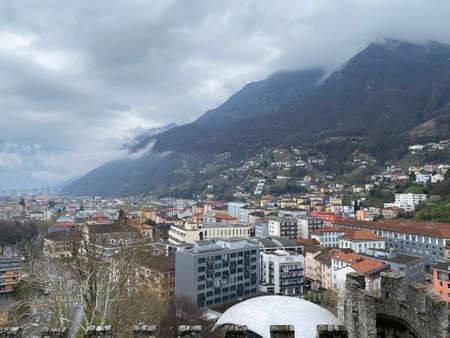 View of the city of Bellinzona, Switzerland. Panorama, mountain views.