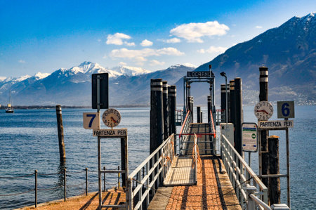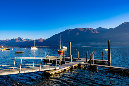 Jetty with a beautiful mountain panorama - Locarno, Switzerland
