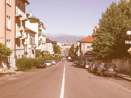 TURIN, ITALY - AUGUST 14, 2014: View of Turin from the hill in Via Villa della Regina Street vintage