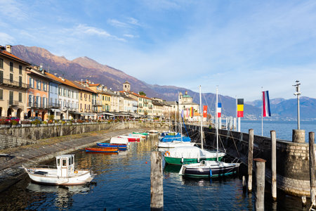 CANNOBIO, ITALY - JANUARY 3, 2022: Landscape of the streets of the small resort town of Cannobio