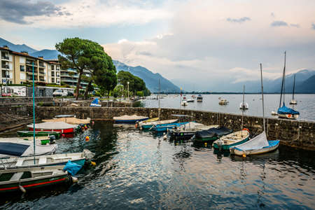 Locarno port with yacht and boats. Locarno is a town located on Lake Maggiore in Ticino canton of Switzerland.