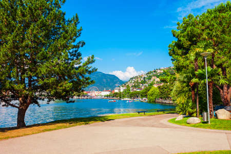 Waterfront promenade in Locarno. Locarno is a town located on the shore of Lake Maggiore in the Ticino canton in Switzerland.