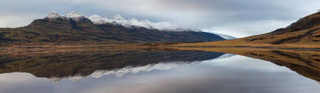 Mountain reflections in Berufjordur, eastern fjords in Iceland