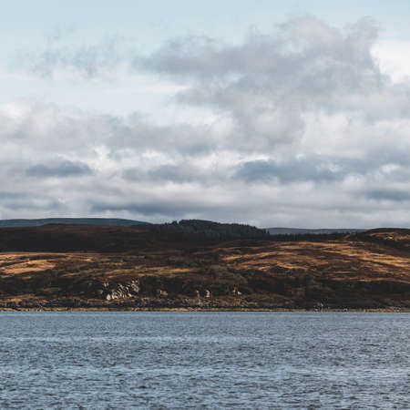 Scenic view of the Kyle Rhea, a strait splitting Skye from the Scottish mainland near Kylerhea village on the east coast of the Isle of Skye, in the Scottish Highlands