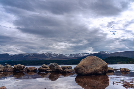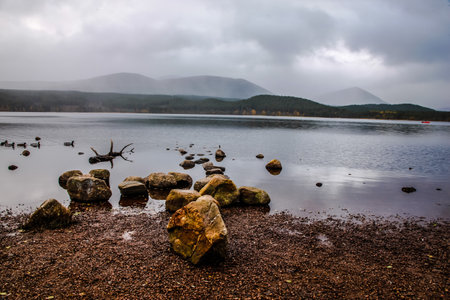 The beautiful Loch Morlich in Scotland, Cairngorm Mountains, United Kingdom