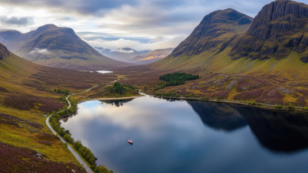 Panoramic view of Glencoe lake in Scotland, United Kingdom