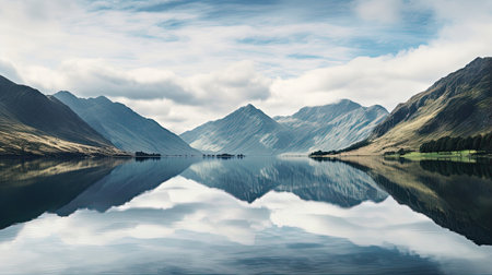 Mountain landscape with lake and reflection in water, Scotland, UK
