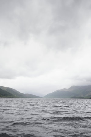 Storm and dark clouds over on open water at Loch Lomond