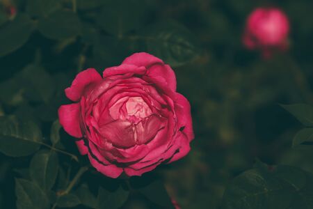 Beautiful pink roses in the garden, vintage color tone style.