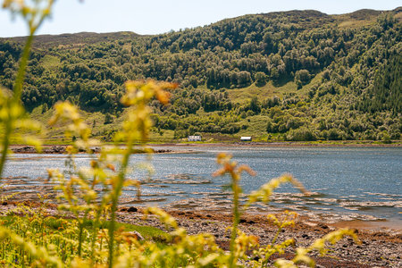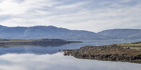 Scenic view of the Kyle Rhea, a strait splitting Skye from the Scottish mainland near Kylerhea village on the east coast of the Isle of Skye, in the Scottish Highlands